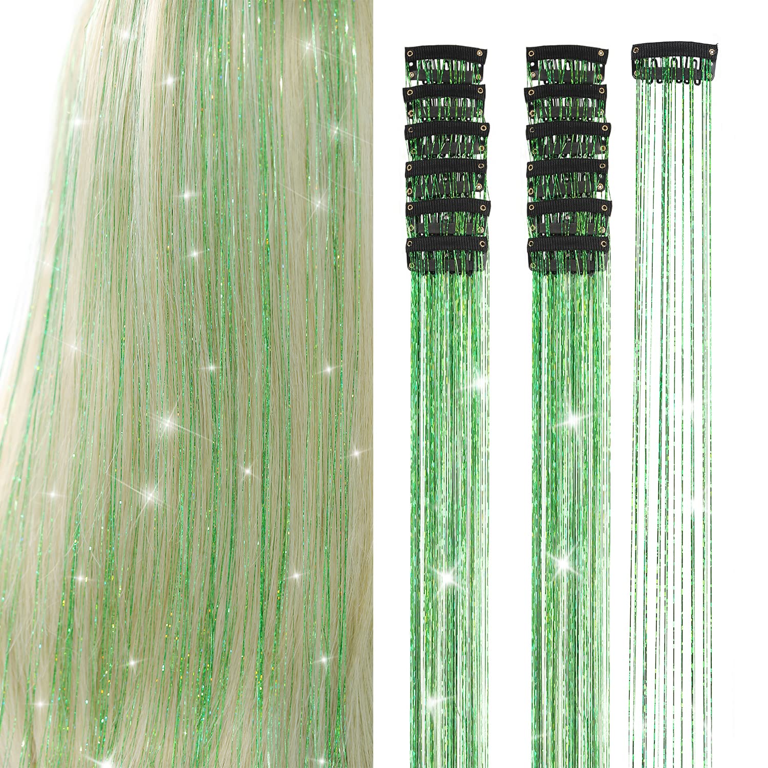LONG ENOUGH TO CREATE ANY HAIR STYLE:The tinsel hair measures 20.5 inches, 20 strands on a single hair clip, can be used over and over again.